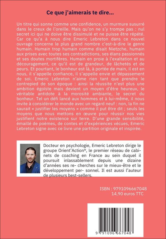 Docteur en psychologie, Emeric Lebreton dirige le groupe Orient’Action®, le premier réseau de cabinets de coaching en France au sein duquel il poursuit inlassablement depuis une dizaine d’années ses re- cherches sur le mieux-être et le développement personnel. Il est aussi l’auteur de plusieurs best-sellers.